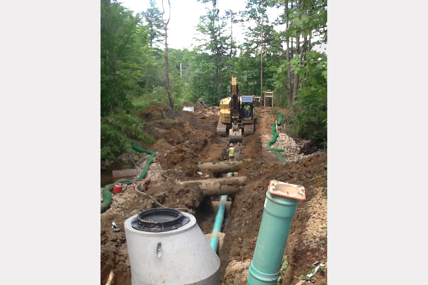 Unique considerations were necessary for this project due to environmental and archaeological features related to the site. Part of the constructed collection sewers area was populated by a protected plant species for which permitting, and construction considerations had to be implemented. This included obtaining a Wild Plant Permit and also an Individual NPDES Permit for Stormwater Discharge Associated with Construction Activities due to the protected plant species occurring adjacent to delineated wetland areas. Also, because a section of pressure sewer was installed as an aerial crossing on a bridge over the lake, a U.S. Army Corps of Engineers Section 404 Joint Permit was obtained to allow this construction. Regarding archaeological issues, findings from the Phase I Archaeological Survey necessitated the relocation of a portion of the sanitary sewers during design.
